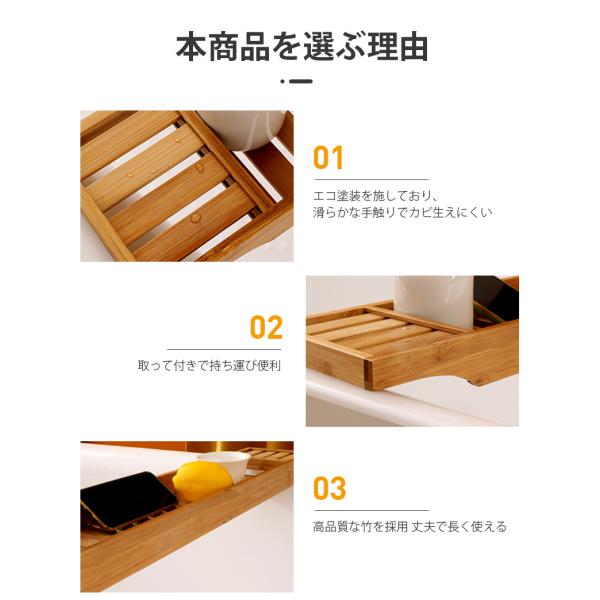 バスタブトレー お風呂ラック 竹製 バス収納トレー 簡易 スマホ置き 浴室収納 軽量 テーブル バスタブトレー バスグッズ 70x15x4.5 モウソウチク制 新生活 応援