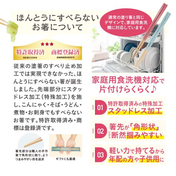 すべらない箸藤栄 箸 お箸 はし ハシ chopstick すべらない 滑らない 滑り止め ノンスリップ 掴みやすい 持ちやすい 使いやすい 食べやすい 落ちない 落とさない 特許 技術 職人 こだわり 日本製 国産 Japan 食洗機 食洗機対応 乾燥機 洗浄機 天然木 木製 木の箸 漆 塗り 特殊加工 軽量 軽い 丈夫 耐久性 子供 子供用 子ども キッズ ジュニア 幼児 小学生 園児 男の子 女の子 入園 入学 通園 通学 準備 練習 トレーニング 矯正 しつけ 食育 知育 マナー デビュー 苦手 克服 高齢者 シニア 老人 年配 祖父 祖母 介護 介助 リハビリ 療養 握力 弱い 低下 麻痺 障害 補助 自助具 ユニバーサルデザイン 麺 麺類 ラーメン うどん そば 蕎麦 パスタ 豆 納豆 こんにゃく 鍋 弁当 お弁当 給食 ランチ 携帯 マイ箸 ギフト プレゼント 贈り物 贈答 お祝い 内祝い お返し 記念品 粗品 挨拶 敬老の日 父の日 母の日 誕生日 還暦 長寿 孫 ペア 夫婦 カップル セット 家族 ファミリー おしゃれ かわいい シンプル モダン 和風 人気 おすすめ ランキング 評判 口コミ 通販