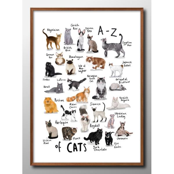 ポスター 猫 ネコ 図鑑 品種 CAT 北欧 絵画 インテリア A3サイズ アート 新築祝い ギフト 模様替え インテリア 管理ID:14462