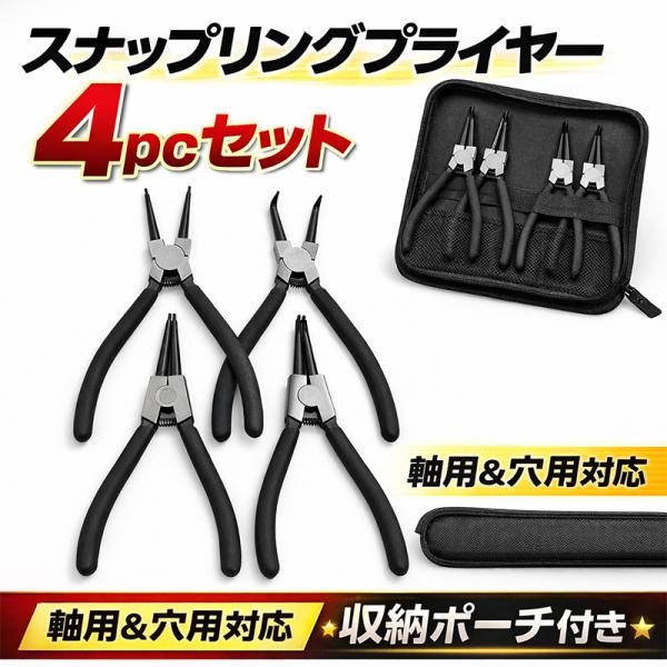 黒スナップリング プライヤー 4pcセット 軸用&穴用 収納ポーチ ODGN2-B194