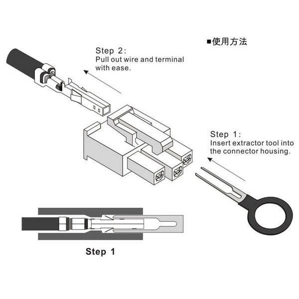本製品は、カプラーやコネクターから配線端子を傷つけずに取り外すための専用工具セットです。