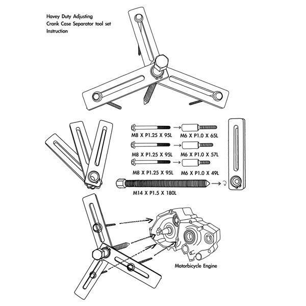 ・単気筒エンジンに多い左右分割((縦割り)クランクケースからクランクシャフト抜き取る際に使うセパレーターツールです。