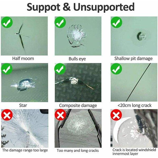 ※合わせガラスの内側ガラス層まで傷がある場合や線状・クモの巣状の亀裂には使用できません。