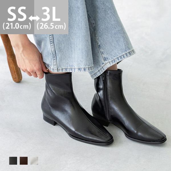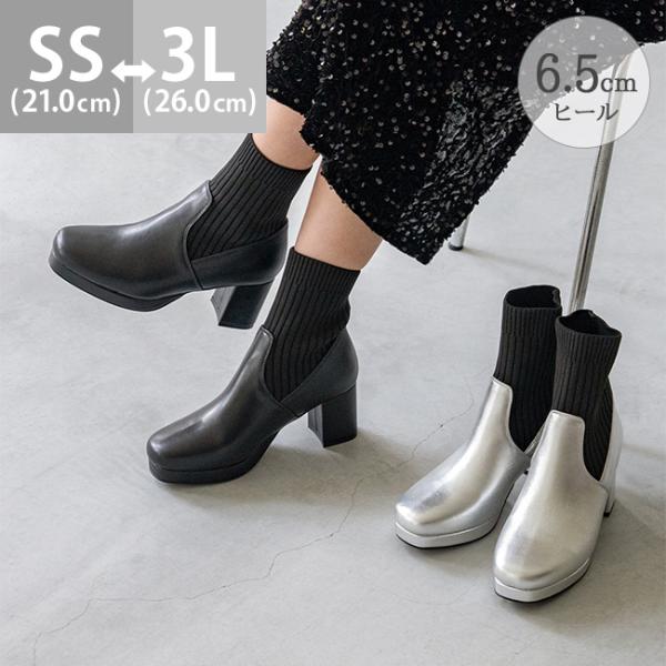 ショートブーツ サイドゴア レディース 歩きやすい 大きいサイズ チャンキーヒール 黒 送料無料 2/13 9:59マデ 3,099円