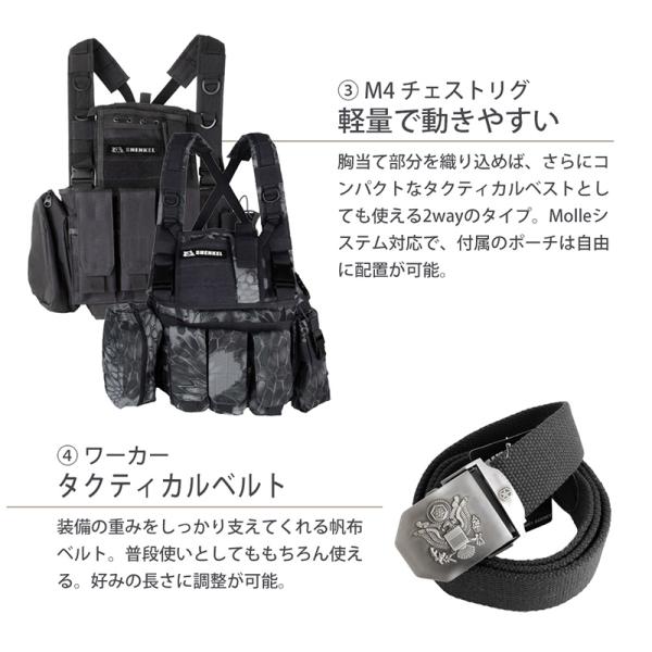 SHENKEL 8点セット シェンケル BDU サバゲー 迷彩服 上下 黒装備 チェストリグ マスク プロテクター ベルト