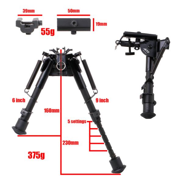 ANS Optical スイング機構搭載 HARRIS ハリスタイプ バイポッド バイポット 6-9インチ 20mmレール マウント アダプター