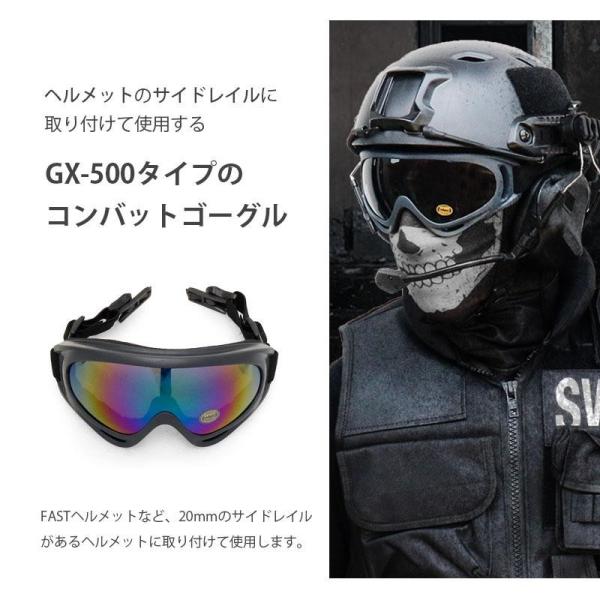 軽量・高強度なコンバットゴーグル GX-500タイプの、ヘルメットレール取り付け用ゴーグルです。