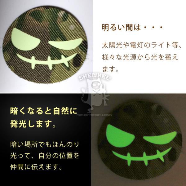 SHENKEL 暗い所で光る!夜光 蓄光 ミリタリーワッペン パッチ 邪悪な笑顔 マルチカム Φ7.5cm 夜間発光 蓄光 サバゲー ミリタリー 装備