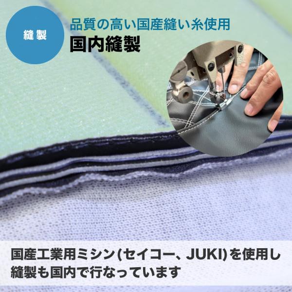 こちらのシートは縫製作業を日本国内の提携シート張替え専門工場で行っております。熟練の職人さんが1点ずつ仕上げております。