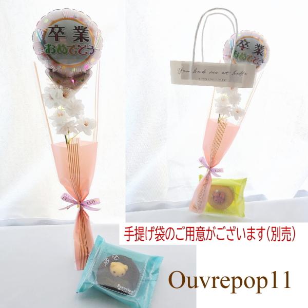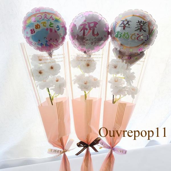 新色追加桜とメッセージバルーンのミニブーケ ソープフラワー 白のさくら 花束 誕生日 発表会 卒業 入学 プチギフト かわいい スイーツ ソープフラワー