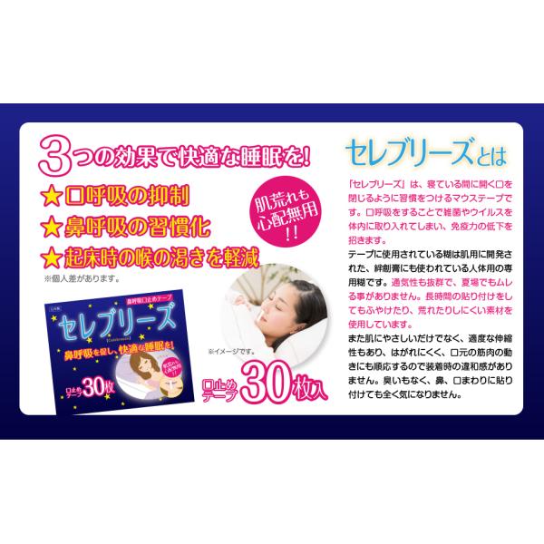 ・『セレブリーズ』は、寝ている間に開く口を閉じるように習慣をつける鼻呼吸テープ マウステープです。