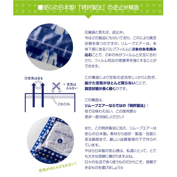 衣類圧縮袋\日本製/圧縮袋 旅行 衣替え (リムーブエアーアソート) 3サイズ10枚セット LLx2、Lx5、Mx3 特許製法逆止弁 実用新案エンボス加工 手で押すだけ 収納