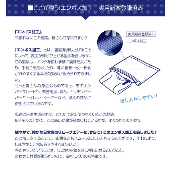 衣類圧縮袋 L10枚セット 日本製 簡単圧縮 旅行 衣替え リムーブエアー 特許製法逆止弁 エンボス加工 (リムーブエアーL10) 圧縮パック 衣替え 収納 防災 出張
