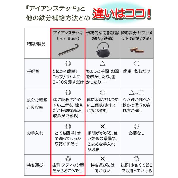 南部鉄器(アイアンステッキ)日本製 南部鉄 鉄分補給 鉄分チャージ 鉄補給 鉄分溶出 鉄分不足 二価鉄 お茶 鉄分 タンニン鉄 お茶に浸すだけ 貧血予防