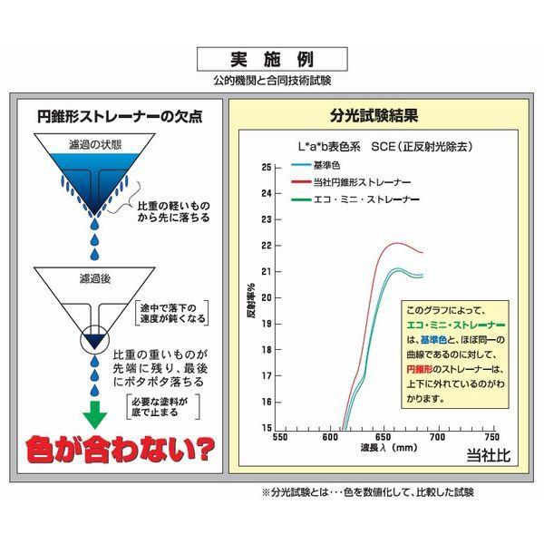 メーカー調査によると、調色した塗料を円錐形ストレーナーで濾過すると、
