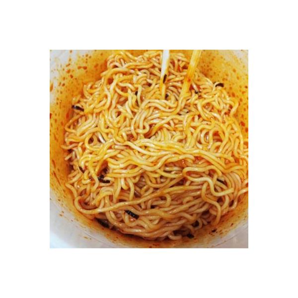 夏に人気がある辛いビビン麺のカップ麺です。 冷たい麺に甘辛ソースをかけたら絶妙な味です。