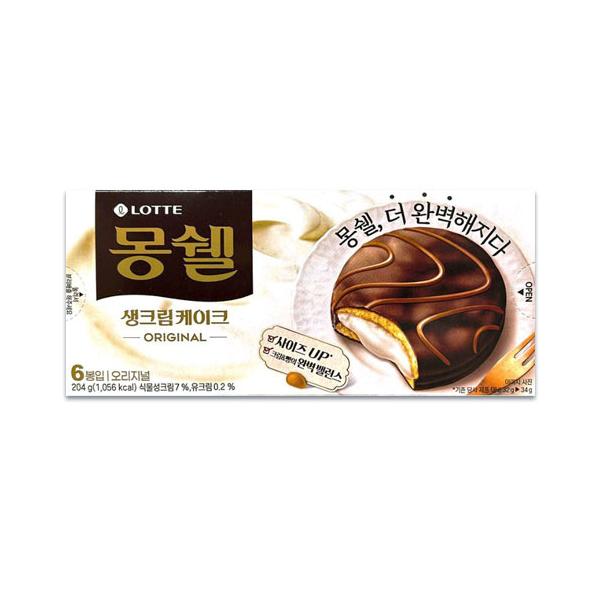 LOTTE モンシェル クリームケーキ オリジナル味 204g (34g×6個) ロッテ プレミアムクリームケーキ チョコレートケーキ 韓国お菓子 韓国食品