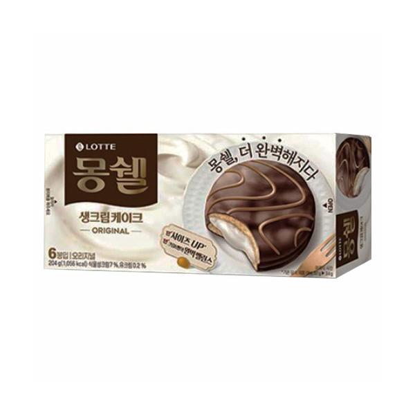 LOTTE モンシェル クリームケーキ オリジナル味 204g (34g×6個) ロッテ プレミアムクリームケーキ チョコレートケーキ 韓国お菓子 韓国食品
