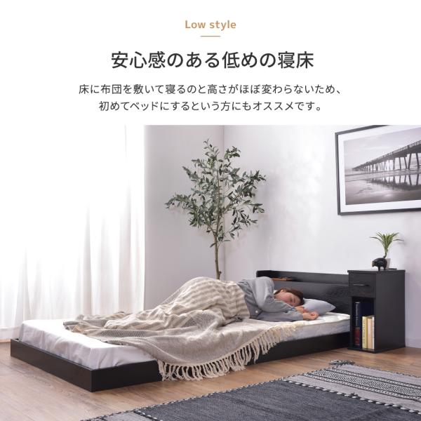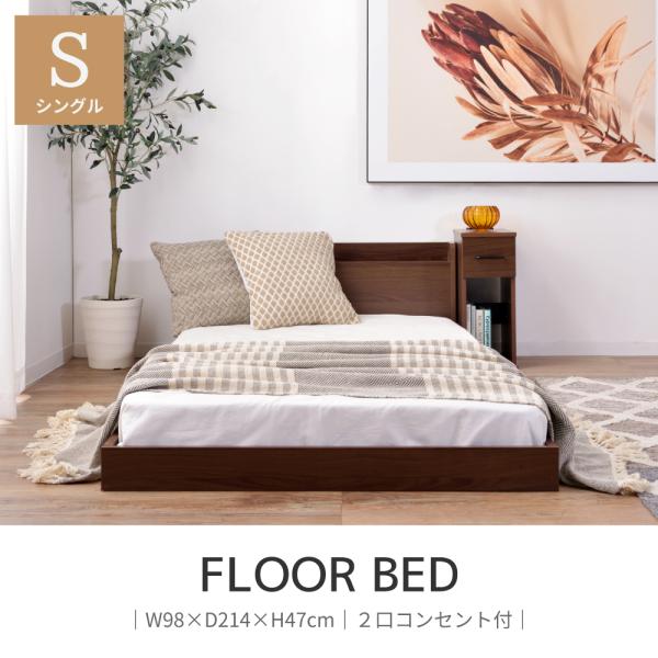 フロアベッド ベッドフレーム ベッド シングル ローベッド ロースタイル 低め すのこ 宮棚 2口コンセント 棚付き 赤ちゃん 一人暮らし