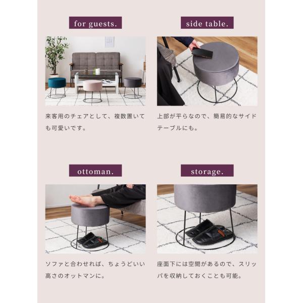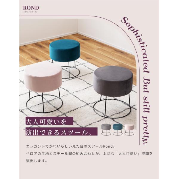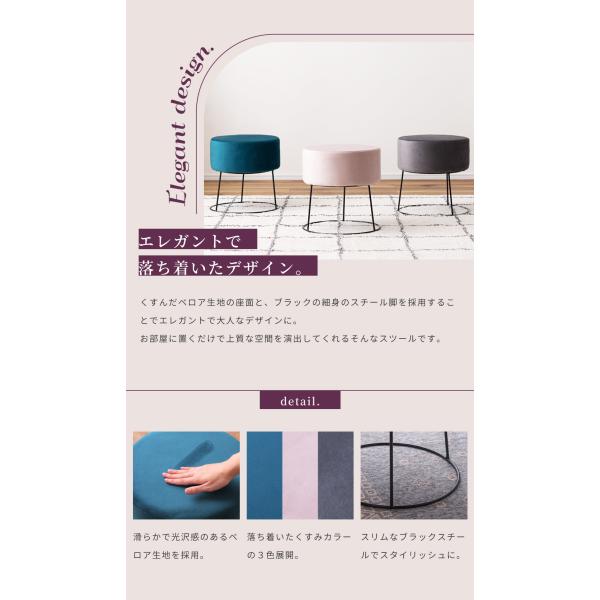 スツール 椅子 おしゃれ 丸 完成品 安い ラウンドスツール ベロア ピンク ブルー グレー