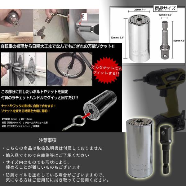 【万能ソケット】使用範囲(mm) / 約7-19mm