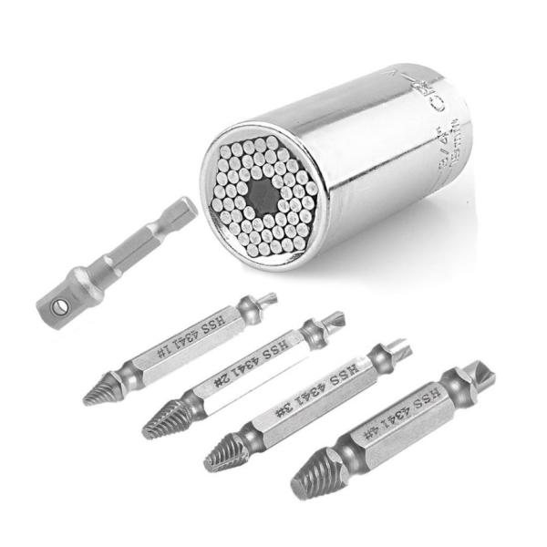 万能 ユニバーサル ソケット 万能ソケット ねじ外し 付き DIY レンチ 6点 セット 整備 工具 ビット 7〜19mm対応 ナット ボルト フックネジ なめた ネジ UNIVAPTA
