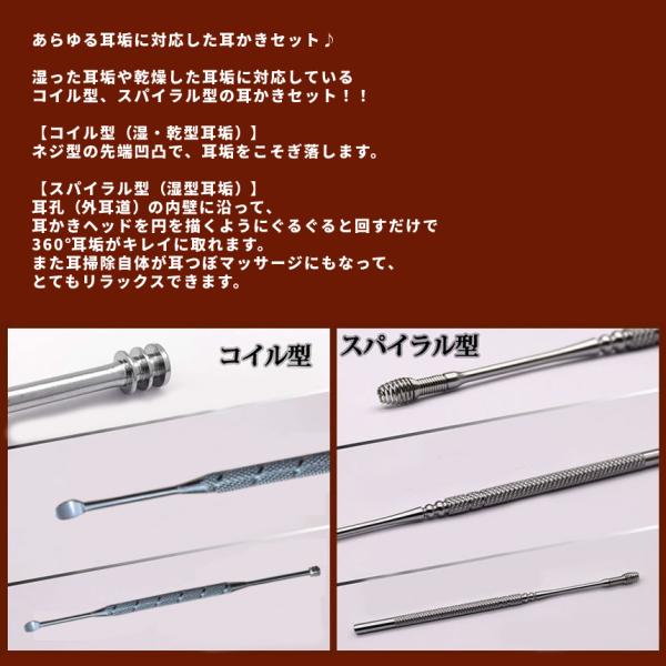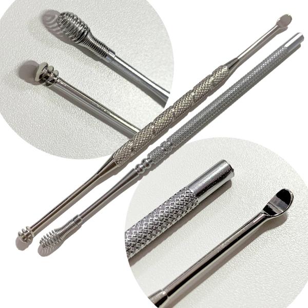 よく取れる 耳かき 2本セット ステンレス スプーン コイル スパイラル タイプ 水洗い 可能 ソフト タッチ 耳垢 みみかき 耳 イヤー ピック クリーナー MIMIKK