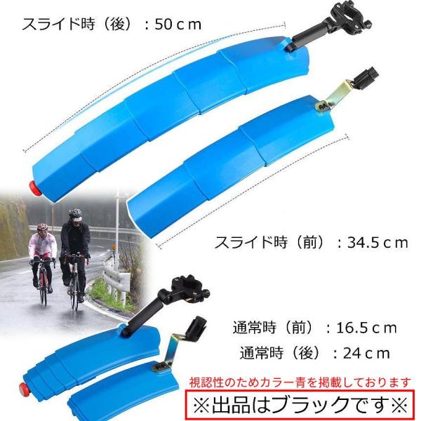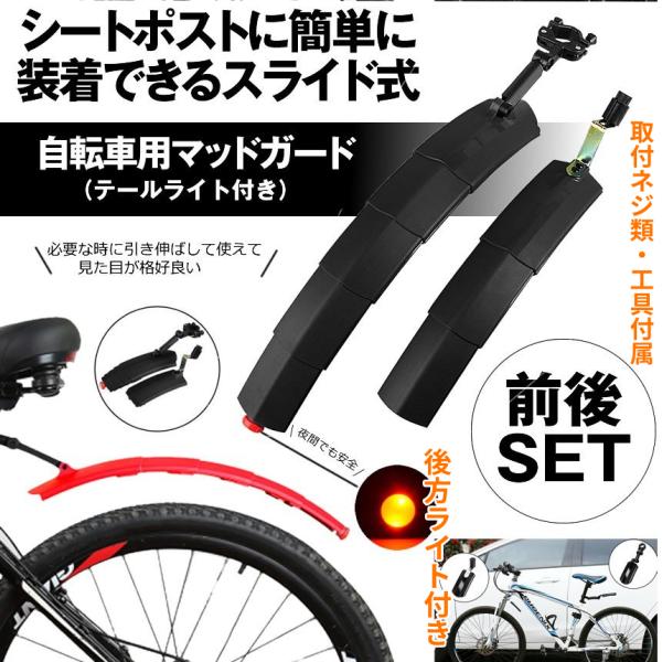 泥よけ 自転車 フェンダー 伸縮式 泥除け スライド式 マッドガード 雨 前輪 後輪 テール ランプ ライト 伸びる 伸縮 マウンテン ロード クロス バイク DOROGON