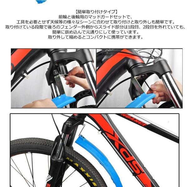 前後セットの伸縮式自転車用フェンダー(泥除け)です。