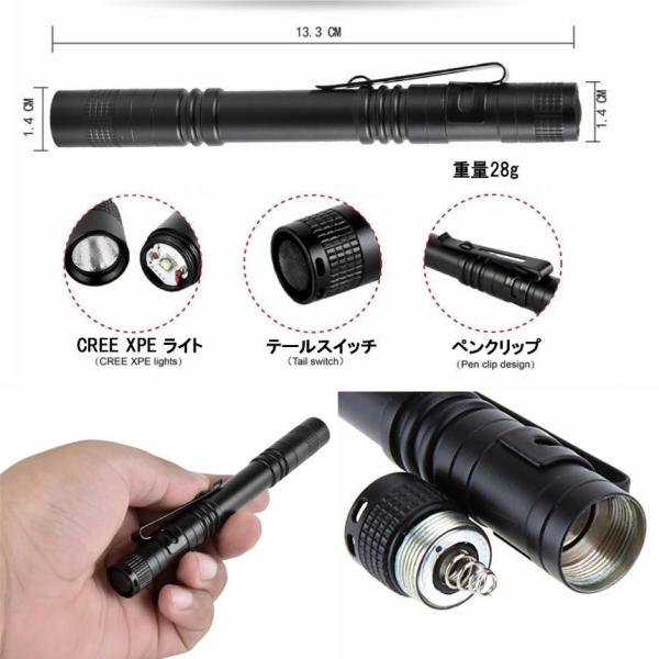 LED ライト 小型 ミニ 懐中電灯 ハンディ ペンライト 全長 13cm ペン型 非常用 クリップ 作業 細身 明るい コンパクト 軽量 電池 防災 災害 釣り DIY PENNLIGHT