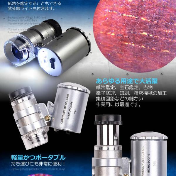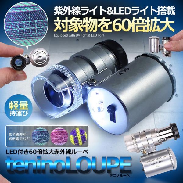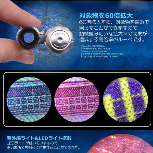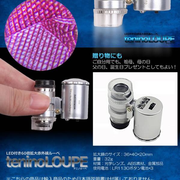 60倍 拡大 小型 ルーペ 紫外線 LED UV ライト マイクロ スコープ ブラックライト 虫眼鏡 作業 顕微鏡 鑑定 研究 校正 校閲 日本語説明書 宝石 軽量 ミニ SRUPE