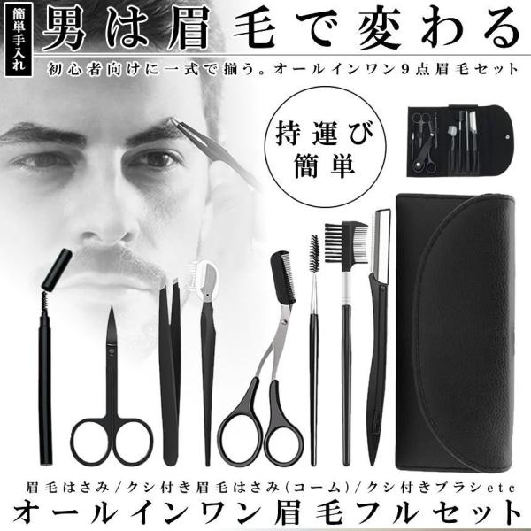 眉毛 カット 9点 セット 綺麗 眉 整える メンズ 眉剃り 眉用 くし付き ハサミ コーム 毛抜き コンパクト 収納 ケース 携帯 持ち運び 簡単 旅行 出張 OTOKOMAYU