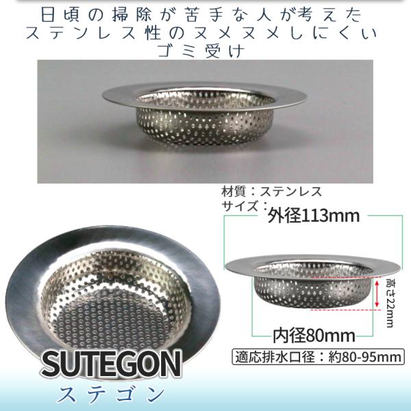 脱 ヌメリ 流し用 ゴミ 受け ステンレス 80-100mm シンク 排水口 排水溝 キッチン 台所 流し台 風呂 バスルーム ヘアキャッチャー ぬめり 髪 簡単 設置 STEGON