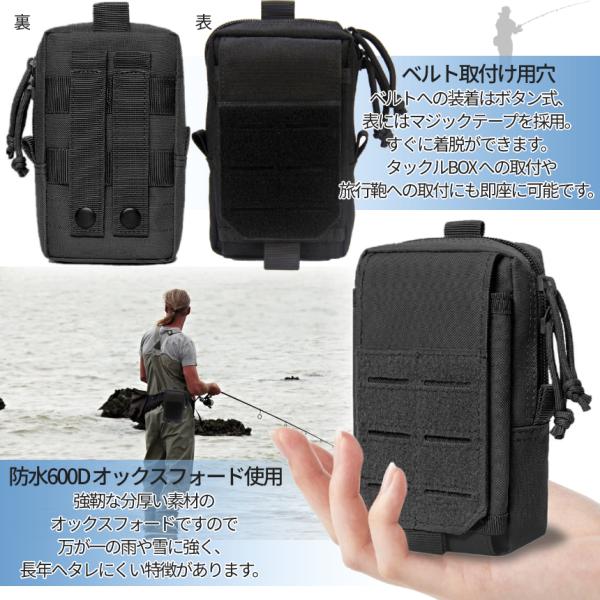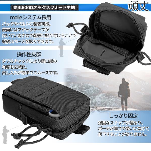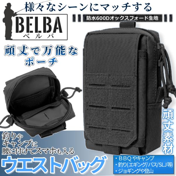 多機能 タクティカル ポーチ ブラック ダブル チャック ベルト 装着 スマホ ウエストポーチ ミリタリー ツール バッグ 登山 小物 入 釣り キャンプ サバゲ BELBA
