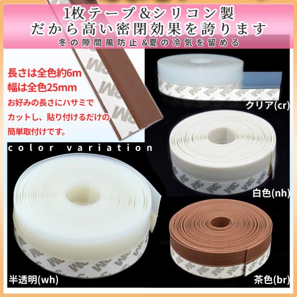 送料無料 白 茶 半透明 防寒 防音 窓 隙間 6m 25mm ドア