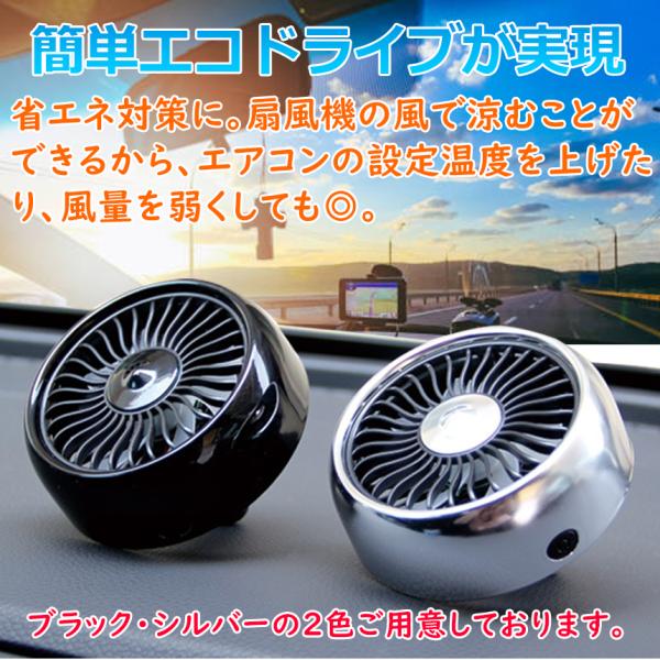 車内 扇風機 車用 卓上 エアコン 送風口 取り付け 角度 調節 可能 LED ライト 暑さ 対策 強風量 小型 USB 給電 ファン 熱中症 ブラック シルバー MARUSENP