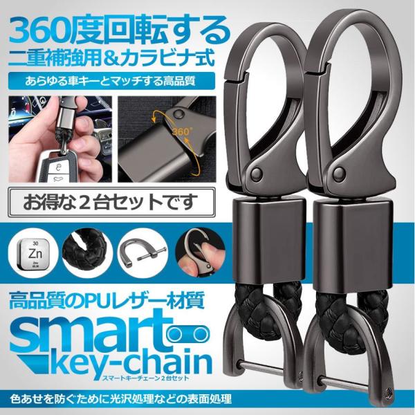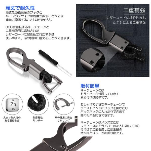 キーリング カラビナ Dカン フック 2個 セット PU レザー 360度 回転 金具 軽量 車 鍵 カギ キー キーホルダー キーチェーン メンズ 男性 プレゼント KICHAIN