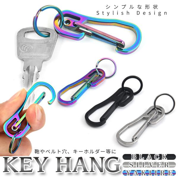 カラビナ ステンレス ナスカン キーホルダー 鍵 キー リング 軽量 アウトドア キャンプ ギア BBQ ミリタリー シンプル メンズ ブラック シルバー 焼入れ KEYHANG