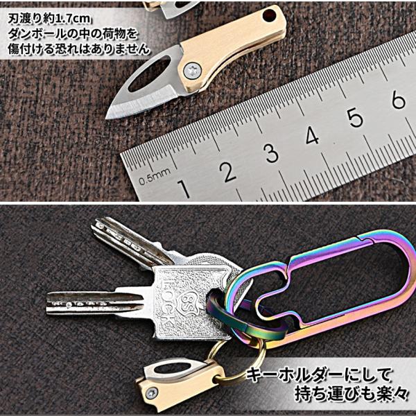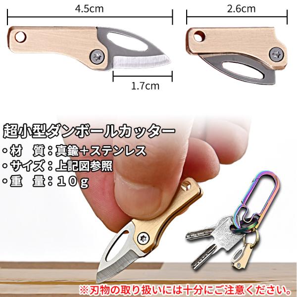 超小型 ダンボール カッター ナイフ 1.7cm 折り畳み コンパクト ミニ ペーパーナイフ 手紙 封筒 開封 開梱 プレゼント 真鍮 ステンレス キーホルダー CHOMINIFU