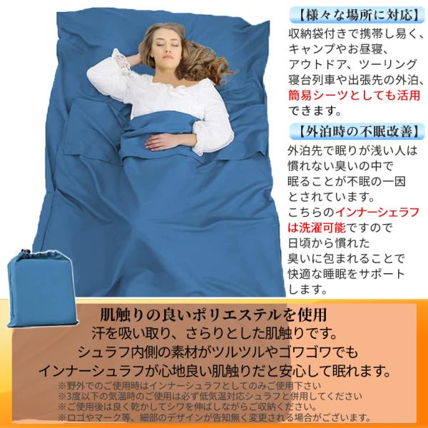 インナーシュラフ 柄 210cm×75cm 寝袋 封筒型 シェラフ アウトドア 緊急 インナー シュラフ トラベル 快適 軽量 肌触り 旅行 列車 車中泊 キャンプ INSHERA