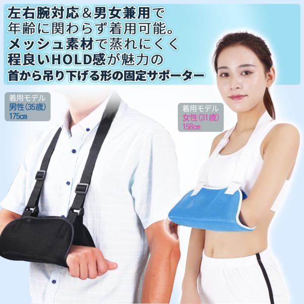 アームホルダー 腕 吊り サポーター 両腕 対応 固定 器具 吊り下げ アーム スリング 骨折 首掛け ギプス 三角巾 メッシュ 男女兼用 ブラック ブルー UDEKOSA