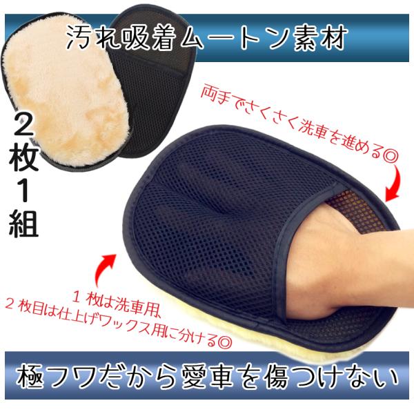 洗車 洗車グッズ ムートン グローブ 2枚セット 手袋 ミトン カー ウォッシュ ワックス 乾拭き 車 屋内 掃除 窓 ミラー フローリング 大掃除 ベルベット 2-MUGULO