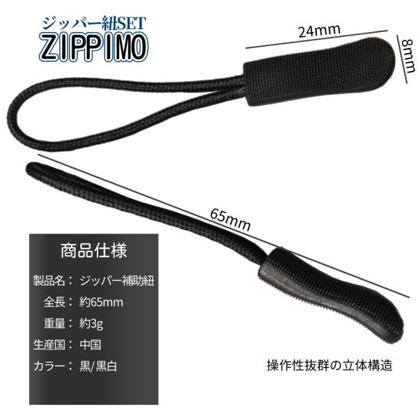 ジッパータブ ファスナー 引き手 引手 紐 6本セット ジッパープル チャック ジッパー 持ち手 ハンドル 交換 シリコン リュック カバン 財布 ポーチ 開閉 ZIPPIMO
