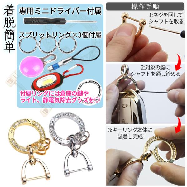 キーホルダー 車 スマートキー ラインストーン カラビナ Dリング スプリットリング 車キーホルダー キーリング 鍵 カギ キー プレゼント ギフト 贈り物 SYAKIRA