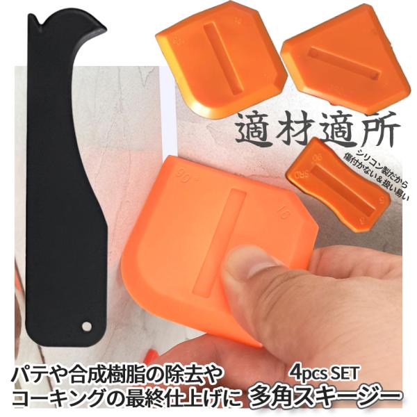 コーキング スクレーパー ヘラ 4個セット シリコン スキージー 多角スキージー 仕上げ 除去 接着剤 パテ シーリング リムーバー コーナー 角 隙間 DORESUKIJ