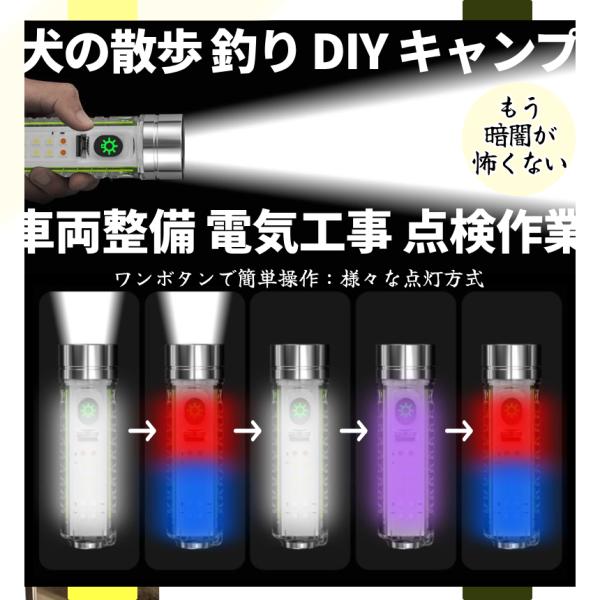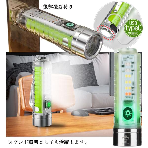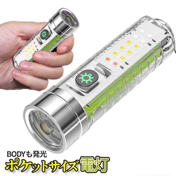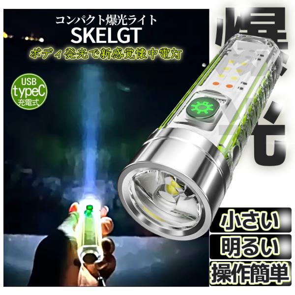 懐中電灯 LED 充電式 小型 LED懐中電灯 ライト ハンディライト USB タイプC ボディ発光 照明 作業灯 LED照明 ミニ 夜間 散歩 作業 DIY COB 光 スケルトン SKELGT