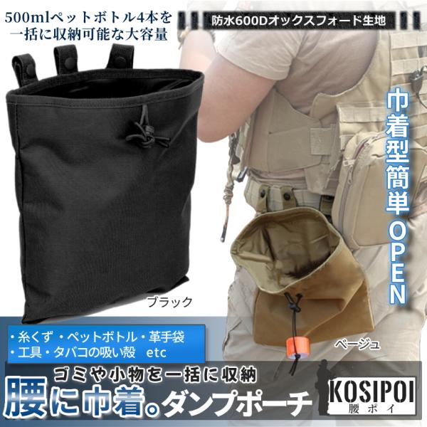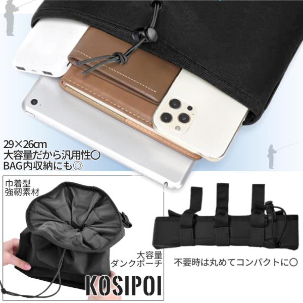 収納 ダンクポーチ 大容量 ポーチ 腰 バーサタイル バッグ ベルト 巾着型 釣りBAG 29×26cm フィッシング クライミング ボタン着脱 ゴミ入れ 大口 KOSIPOI