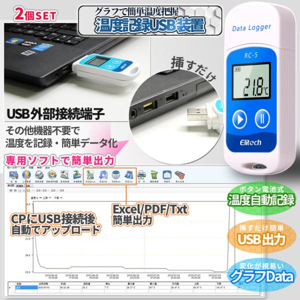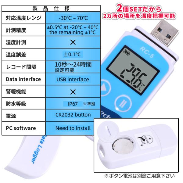 温度 管理 記録 データロガー 2台 USB 記録計 レコーダー 簡単 解析 PC 接続 管理 Excel 保存 データ ロガー 温度レコーダー 飼育 ハウス 倉庫 車内 2-ONDKANRI