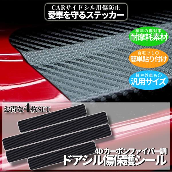 サイドシル 傷防止 ステッカー 4枚 4D カーボン ファイバー シール ドア プロテクター ドアシル ステップガード 車用 保護 キズ防止 汎用 FOHOG