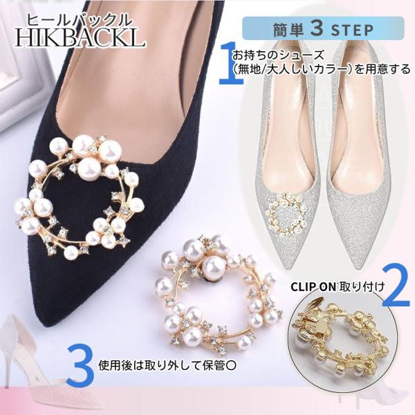 ヒール クリップ バックル パンプス パール 装飾 靴 ラインストーン 結婚式 入学式 卒業式 入園式 卒園式 パーティー アクセサリー 女性 レディース HIKBACKL-A